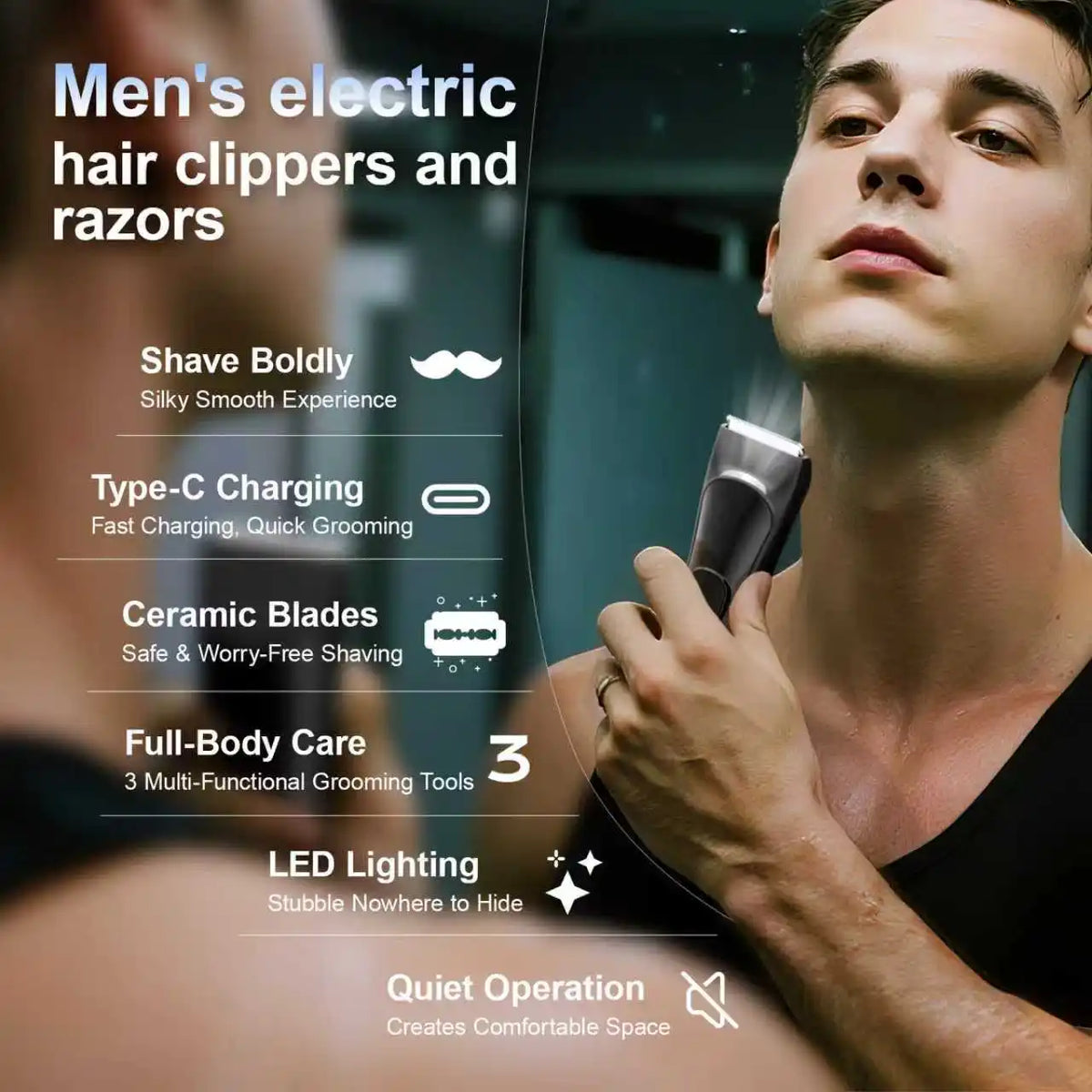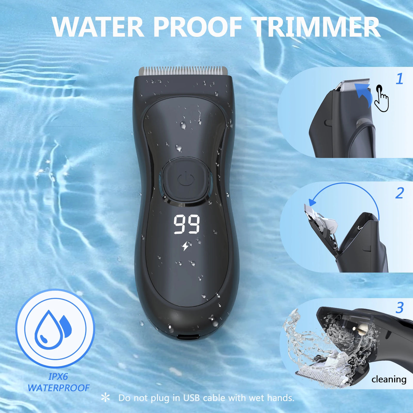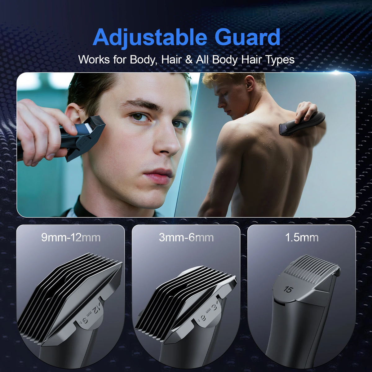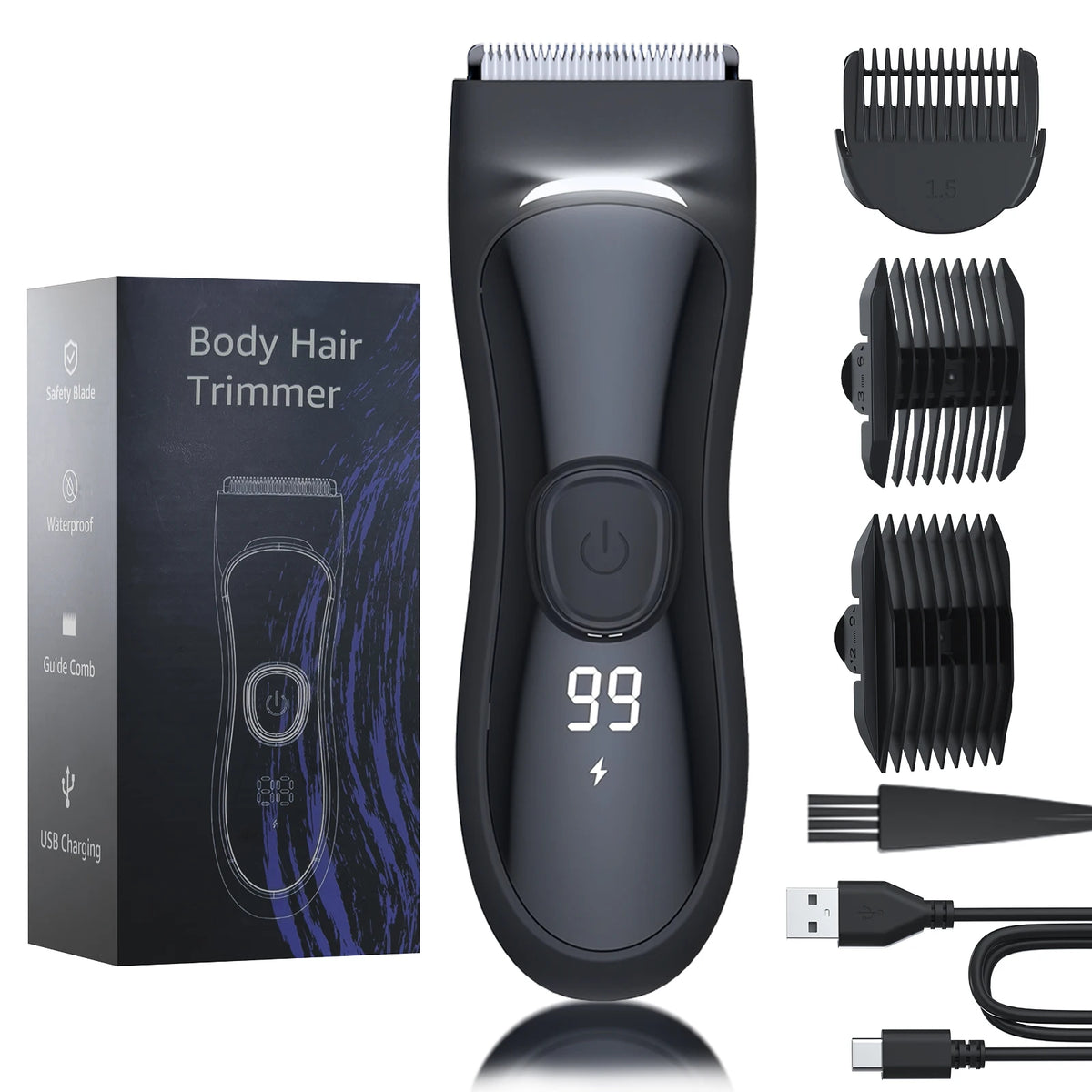 Multi-functional grooming tool suitable for haircuts, beard shaping, and body grooming.