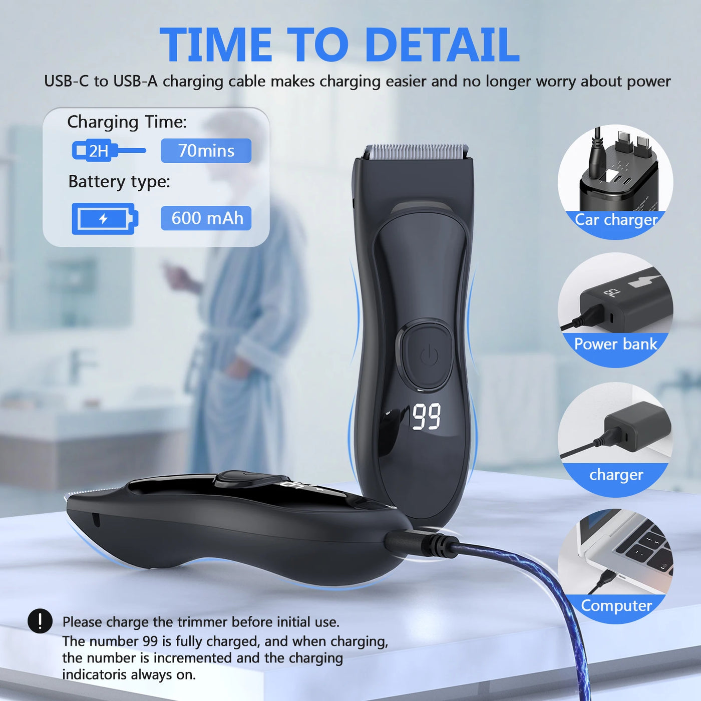 USB rechargeable & cordless use for convenience at home or while traveling.